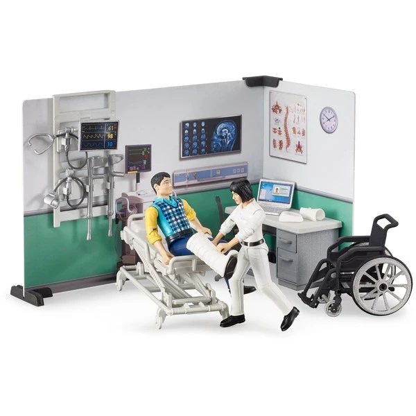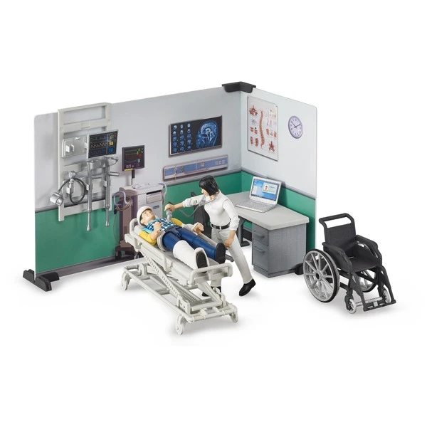 Das Thema Einsatz und Rettung spielt bei BRUDER eine wichtige Rolle. Mit der bworld Krankestation gibt es jetzt einen Anlaufpunkt für alle Einsatzfahrzeuge von BRUDER. Hier kann jeder Patient bestens versorgt werden. Die Ärztin verfügt dabei über modernste Ausrüstung und kann jeden Patienten, je nach Art des Notfalls im Krankenbett samt Überwachungsmonitor oder im Rollstuhl behandeln. bworld, das ist die Spielwelt von BRUDER. Diese besteht aus beweglichen Figuren, Tieren, Zubehören und neuestens auch aus Themensets und ist den bekannten BRUDER Kategorien zugeordnet. Ob als Fahrer, Reiter, Wassersportler, in der Krankenstation, oder Motorradwerkstatt, bworld Artikel bieten schon alleine jede Menge Spielspaß und sind die ideale Erweiterung zu den detailgetreuen Fahrzeugen.Art.-Nr.: 1501170