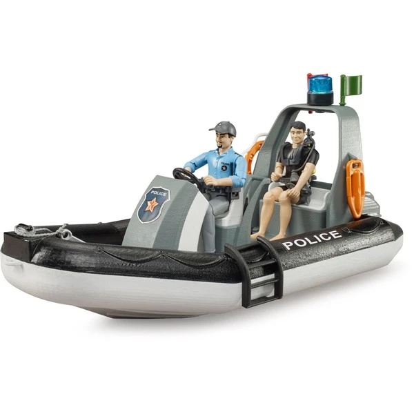 Die BRUDER Polizei erhält Verstärkung und erweitert ihr Einsatzgebiet aufs Wasser. Um auch zukünftig auf jeder Art von Gewässer einsatzfähig zu sein, kommt zu den BRUDER Einsatzkräften ein Schlauchboot mit Einsatztaucher hinzu. Das Polizeiboot mit Steuerkonsole ist durch seine Wendigkeit und vielseitige Einsetzbarkeit ein wichtiger Helfer im Polizei Alltag. Damit Kinder auch möglichst nahe an der Realität diese Einsätze nachspielen können, ist das BRUDER Polizeiboot natürlich schwimmfähig und mit einem Rundumlicht ausgestattet. Zwei bworld Figuren ergänzen dieses umfangreiche Set. Während der Polizist für das Steuern des Bootes eingeteilt ist, kümmert sich der vollständig ausgestattete Polizeitaucher um die Einsätze im Wasser.Art.-Nr.: 1827750