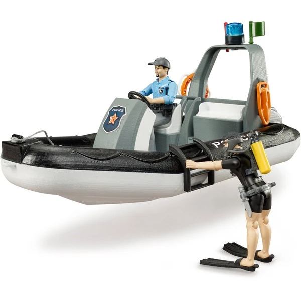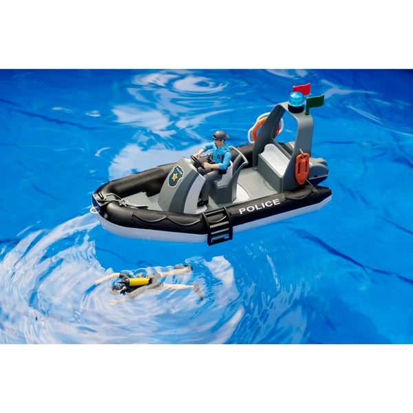 | Inhalt/Ausstattung | Schwimmfähiges Schlauchboot mit Rundumlicht und zwei bworld Figuren (Einsatztaucher und Polizist) und Zubehör | ||