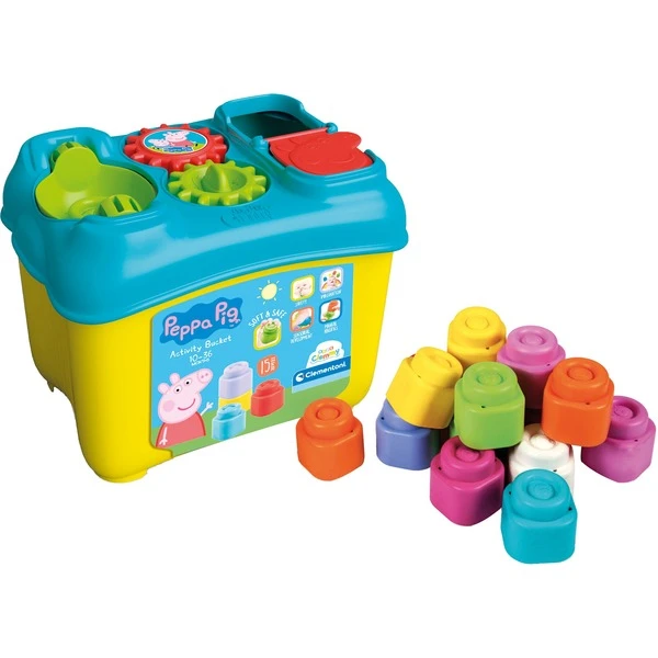 Dieses Set besteht aus einem Eimer in Form eines Hauses, in dem sechs weiche Clemmy-Blöcke verstaut sind. Mit diesen weichen Bausteinen können auch kleine Kinder ab 18 Monaten sicher spielen und sie fördern die motorischen Fähigkeiten. Mit dabei ist auch eine Peppa Wutz-Spielfigur.Art.-Nr.: 1821151