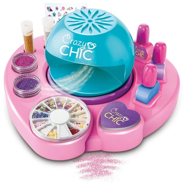 | Inhalt/Ausstattung | Kunststoff-Arbeitsfläche, glitzernder Nagellack, Lacktrockner, Nagelfeile, Dekor-Aufkleber, herzförmige Dekorationen, Micro-Perlen, farbiges Glitzerpulver, Antirutschfüße, Anleitung | ||