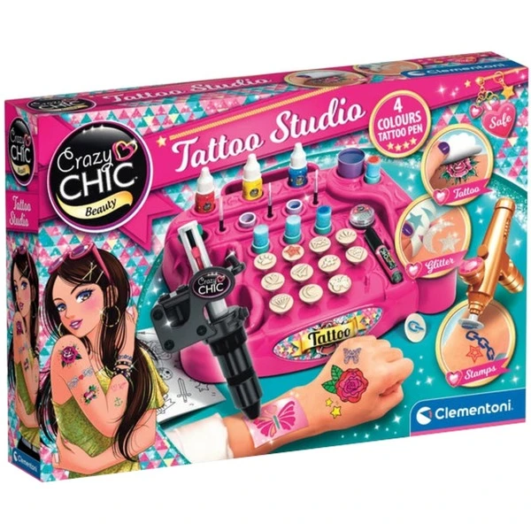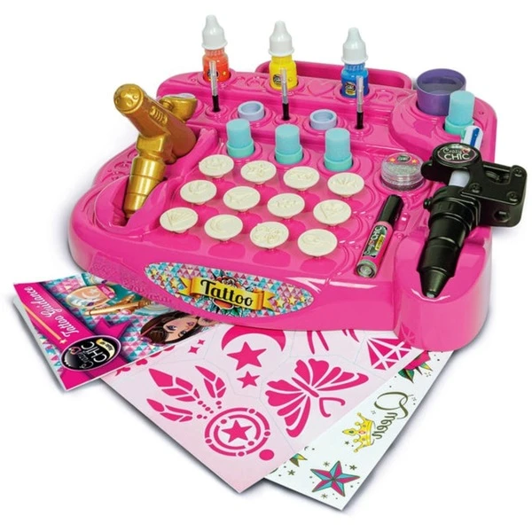 Für alle Tattoo-Fans, ein super cooles Set, um unglaubliche Freihand- oder Schablonen-Tattoos zu kreieren! Mit dem speziellen Körperstift mit austauschbaren Farbspitzen können Mädchen auf spielerische Art und Weise ihre eigenen persönlichen Tattoos kreieren, indem sie sie von Hand oder anhand von Schablonen zeichnen. Enthält außerdem Körperfarben zum Einfärben der erstellten Tattoos, Schwämme, Applikatoren, Schablonen und ein Tattoo-Buch mit Zeichnungen, Tipps und Blankoblättern, um deine Lieblingstattoos zu erstellen!