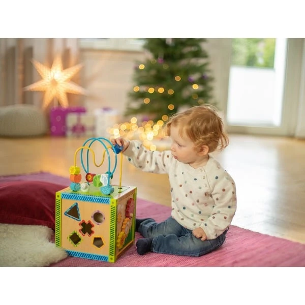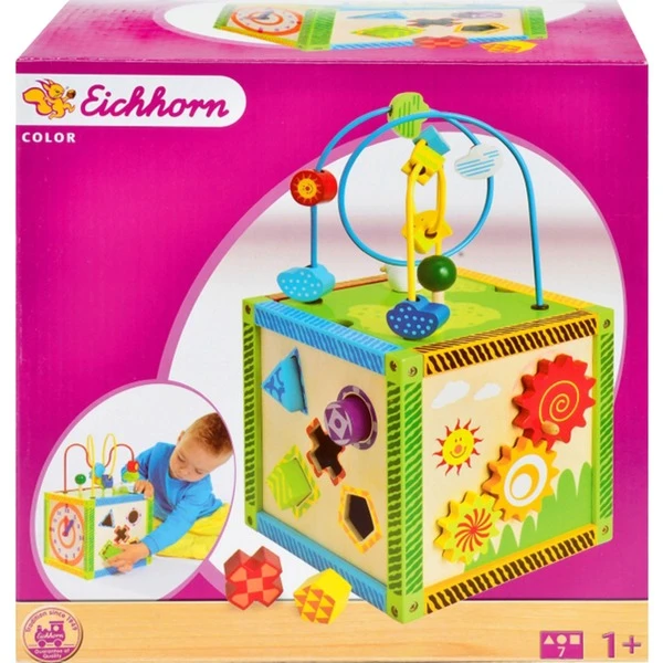 Das Spielcenter von Eichhorn Color sorgt für unendlichen Spielspaß durch die vielen unterschiedlichen Aktivitäten, die dieser Würfel bietet. Diese Spielmöglichkeiten fördern den Lernprozess der Kinder und unterstützen die Entwicklung des Feingefühls mit Hilfe der Motorikschleife, des Sortier- und Zählrahmens, der 5 Steckbausteine und des Drehspiels.Art.-Nr.: 1195515