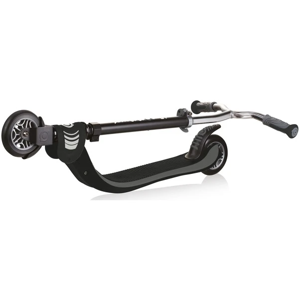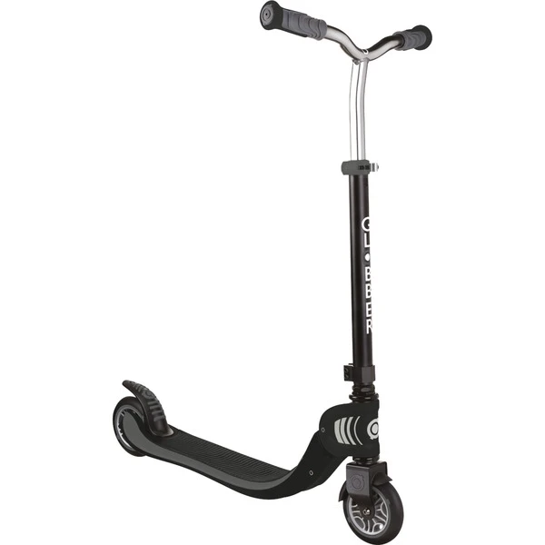 Der faltbare Flow 125 bietet hochwertige Verarbeitung, viel Fahrspaß und überzeugende Technik. Dieser über ein Druckkopf-Faltsystem einklappbare Scooter kommt mit gegossenen PU-Rollen (Durchmesser 121 mm) und ABEC 5 Kugellagern. Die Hinterradreibungsbremse sorgt für sichere Bremsleistung. Der extra breite Lenker im BMX-Stil ist mit ergonomischen Griffen ausgestattet. Die Lenkstange besteht aus Aluminium und ist 4-fach von 81 bis 96 Zentimeter höhenverstellbar. Sie verfügt über einen Schnellspanner und eine Sicherheitsarretierung. Das extra tief ausgeführte Deck hat eine stabile Antirutsch-Fläche mit EVA-Beschichtung. Das maximale Benutzergewicht dieses Scooters mit integriertem Self-standing-Modus liegt bei 100 Kilogramm. Art.-Nr.: 1700364