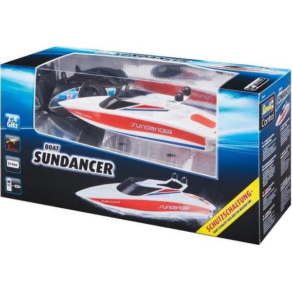 In die See stechen mit der eigenen Yacht. Der Revell Control SUNDANCER ist das perfekte Boot mit neuester Technik. Zwei Elektromotoren und der integrierte Lithium-Ionen-Akku liefern die nötige Power und eine lange Fahrzeit. Mit dem enthaltenden USB-Ladegerät kann man die Yacht an jedem USB-Port wieder aufladen. Die komplett gekapselte Elektronik ist auch bei wilden Fahrmanövern vor eindringendem Wasser geschützt. Durch die 2,4 GHz-Technologie kann man mit mehreren Freunden gleichzeitig Boote steuern, ohne dass man sich gegenseitig stört. Die enthaltende Schutzschaltung verhindert das Anlaufen der Propeller außerhalb des Wassers. So besteht keine Verletzungsgefahr.Art.-Nr.: 1725531