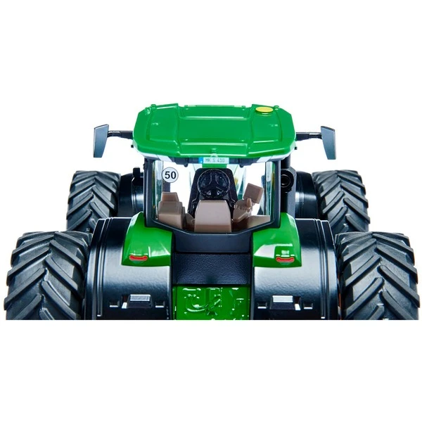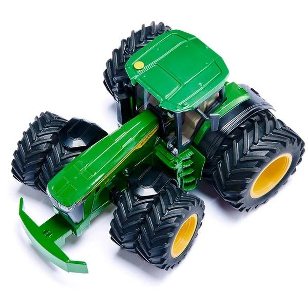 Der John Deere 8R 410 ist im Original ein echter Koloss und ein wahres Kraftpaket: Er verfügt über einen 9.0-Liter-Motor mit 6 Zylindern und 443 PS und hat ein Einsatzgewicht von 14 Tonnen. Er ist einer der verlässlichsten und flexibelsten Partner für den Einsatz auf dem Feld und den Transport auf der Straße. SIKU präsentiert den 8R 410 als Weiterentwicklung des bestehenden Modells in einer Sonderedition mit Doppelrädern: Formvollendet und dem Original-Traktor bis ins kleinste Detail in kleinem Maßstab nachempfunden, bietet der 8R 410 ein tolles Spielerlebnis für kleine und große Traktor-Fans. Motorhaube, Kotflügel vorne und hinten sowie Fahrgestell des Modelltraktors sind aus Metall und trotzen Wind und Wetter beim Spielen drinnen und draußen. Die formschönen John Deere-Felgen werden von mächtigen Doppelreifen aus gummiertem Material mit landwirtschaftlichem Profil umgeben. Die neue, vergrößerte Fahrerkabine mit den klappbaren Spiegeln bietet zudem noch bessere Sicht und Überblick beim Einsatz auf dem Feld oder Hof. Sie kann abgenommen werden und erleichtert so nicht nur dem Fahrer den Einstieg, sondern bietet zudem auch noch besseren Zugriff auf das Lenkrad. Damit lässt sich der Traktor steuern und ermöglicht so ein noch realistischeres Spiel- und Fahrerlebnis: Eine Achsschenkellenkung an der Vorderachse macht den Traktor leicht manövrierbar. Zusätzlich ermöglicht die Standard SIKU Front- und Heckkupplung aus Metall mit beweglichen Elementen das Anheben und Absenken von landwirtschaftlichen Maschinen.Art.-Nr.: 1902528