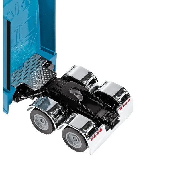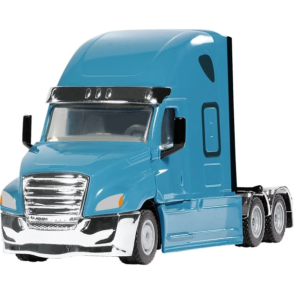 Mit diesem Schwergewicht zeigt Daimler wo der Hammer hängt: Gemacht für US-Highways ist der Freightliner in seiner Gewichtsklasse kaum zu überbieten. Denn ein Freightliner ist ein überaus robustes und zuverlässiges Fahrzeug, das Tag für Tag auch unter härtesten Bedingungen zum Einsatz kommen kann. Das Modell Cascadia, ein wuchtiger US-Truck mit Drei-Achs-Fahrgestell, ist ein Flaggschiff im Fernverkehrssegment und eine beeindruckende Kombination aus modernster Technik, Effizienz und Sicherheit. Und auch an den Fahrer wurde gedacht: Hinter der Fahrerkabine befindet sich ein riesiger Sleeper als komfortable Ruheinsel für unterwegs. Durch die Lackierung in „Miami Blue“ mit Chromelementen kommt das auffällige Design dieses Modells besonders gut zur Geltung. Die Motorhaube lässt sich öffnen. Bei diesem Modell handelt es sich um eine Solozug-Maschine, die durch ihre integrierte Standardkupplung mit sämtlichen Aufliegern der SUPER-Serie kombiniert werden kann.Art.-Nr.: 1902861