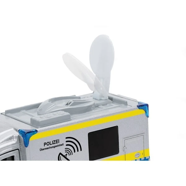 Dieses SIKU-Modell eines Einsatzfahrzeuges der Polizei überzeugt durch vielfältige Details. Der Mercedes-Benz Sprinter mit Überwachungsausstattung verfügt über eine ausklappbare Antenne am Dach, seine Türen lassen sich öffnen und das Dach abnehmen. Außerdem ist eine Anhängerkupplung am Heck vorhanden.Art.-Nr.: 1902870