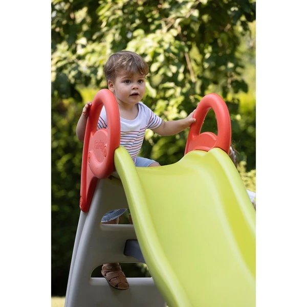 Die Wellenrutsche Funny II von Smoby verspricht tollen Rutschspaß an heißen Sommertagen: Diese Rutsche aus stabilem, UV-beständigem Kunststoff steht dank breitem Standfuß stets stabil, verfügt über rutschfeste Stufen und eine Treppe mit Geländer. Und damit es beim Rutschen auch richtig flott die Rampe herunter geht, gibt es einen Anschluss für einen Wasserschlauch. Der flache Rutschauslauf ermöglicht dabei eine sanfte Landung. Die Länge der Rutsche liegt bei zwei Metern.Art.-Nr.: 100007041