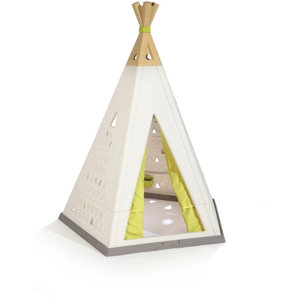 Das Smoby Spielzelt Tipi besteht aus UV-stabilem, pflegeleichtem Kunststoff. So eignet sich ideal zum Spielen von Cowboy und Indianer im Innen- und Außenbereich. Das Spielzelt kann in der Höhe an die Bedürfnisse der Kinder angepasst werden, von 1,59 cm bis 1,83 cm. Der Eingang kann mit Stoff verschlossen werden.