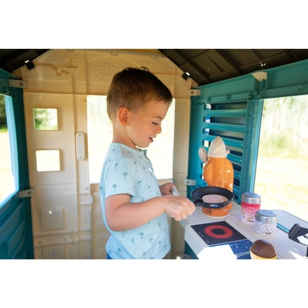 Eröffne deinen eigenen Sweetshop und lade Freunde und Geschwister zum gemeinsamen Spielen in dein Smoby Spielhaus Sweety Corner ein. Sie werden vor deiner Verkaufstheke Schlange stehen, denn hier gibt es so viel Leckereien. An der Eismaschine kannst du die tollsten Kreationen bereiten und auf der Herdplatte kann der Pfannkuchen in der speziellen Pfanne mit Wender zubereitet werden. Gezahlt wird mit Kreditkarte oder bar. Auch für Sonderwünsche bist du bestens ausgestattet, denn das Spielhauszubehör enthält einen Teller, ein Besteckset mit Gabel, Messer und Löffel, einen Take-Away Kaffeebecher, Pfannkuchenpfanne mit Wendefunktion, 2 Pfannkuchen, Zuckerdose, Streuseldose, Eismaschine, 2 Eiskugeln und Waffeln sowie 4 Kassenbelege, Kleingeldfach, Kreditkartenlesegerät und Kreditkarte. Dank des besonderen Fertigungsverfahrens ist das Gartenhäuschen kinderleicht zu montieren und besonders stabil. Die vier robusten Seitenwände sind detailreich gestaltet, Schmetterlinge und eine kleine Katze zieren die Fassade des Häuschens und geben ihm so ein lustiges Äußeres. 2 Fenster mit Lamellen und ein mit Kreide beschriftbarer Schiebeladen zum Auf- und Zuschieben sowie eine kleine Eingangstüre ergänzen die kindgerechte Ausstattung dieses vielseitigen Spielgeräts. Hergestellt aus hochwertigem, UV-stabilem Kunststoff und besonders widerstandsfähig gegen Wettereinflüsse und Ausbleichung.Art.-Nr.: 1788608
