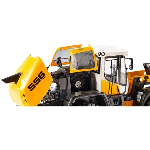 Dieses Modell eines Liebherr Radladers L556 aus dem Hause Wiking überzeugt durch hohe Präzision, Detailgenauigkeit und tolle Funktionen. So kann die hintere Motorhaube geöffnet werden, das Knickgelenk ist beweglich, der Ladearm hat realistische Bewegungsabläufe und der Frontlader kann gewechselt werden. Eine Palettengabel als zweites Frontladerwerkzeug wird mitgeliefert. Hinzu kommen die originalgetreue Bedruckung von kleinsten Details, grobstollige Reifen und filigran eingesetzte Leuchten – insgesamt wurden mehr als 110 Einzelteile in diesem Modell verbaut. Das Modell ist mit anderen Wiking-Modellen mit Maßstab 1:32 kombinierbar.Art.-Nr.: 1902831